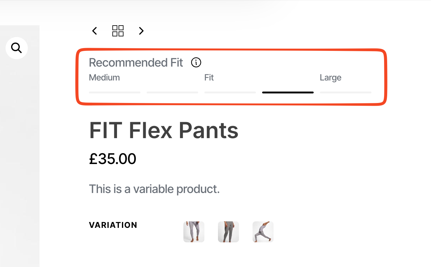 Recommended Fit allows you to display a fit indicator bar on the single product page. It helps customers understand which size or fit is recommended for a specific product.